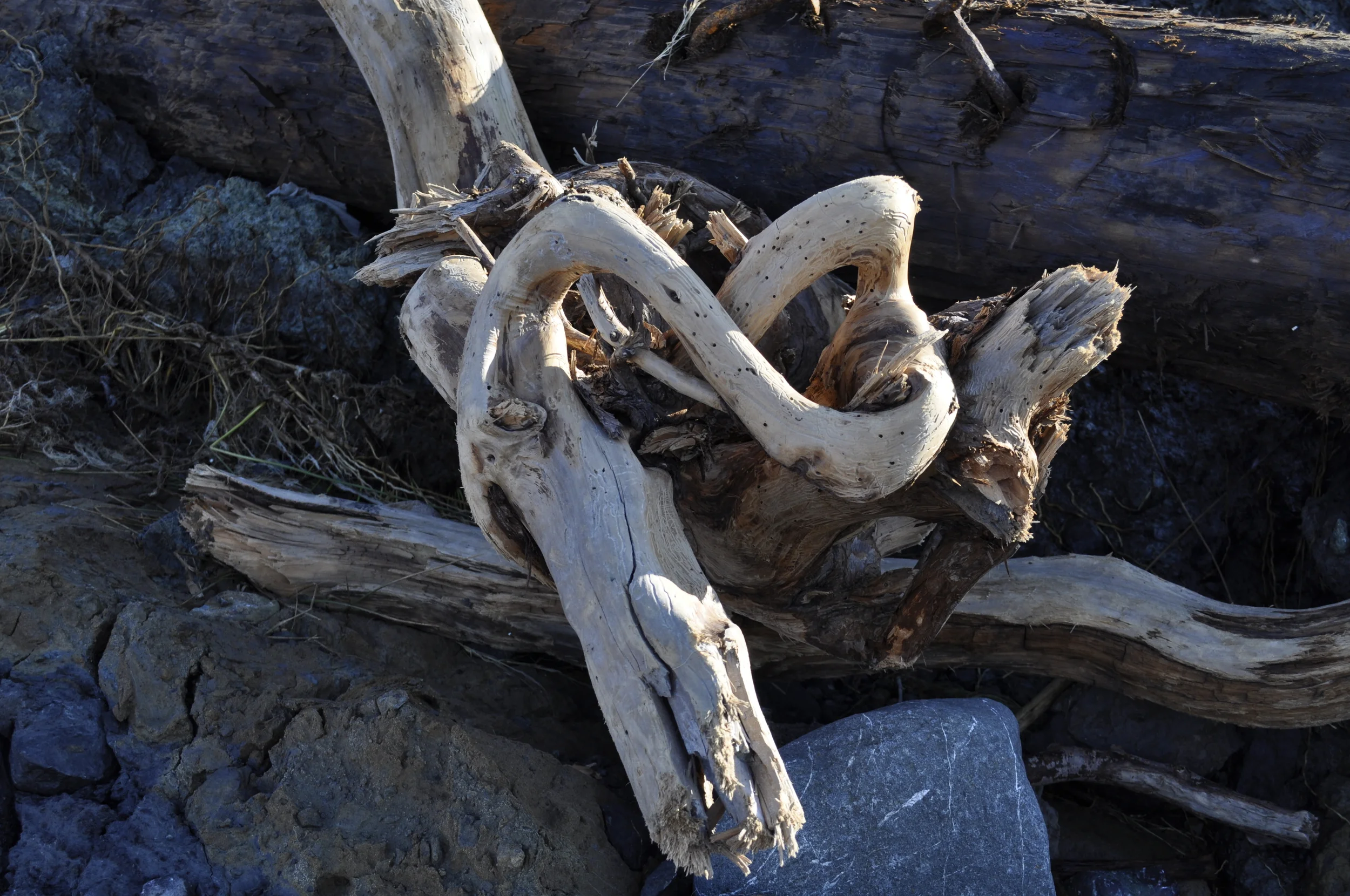 Driftwood chewed on by sea worms